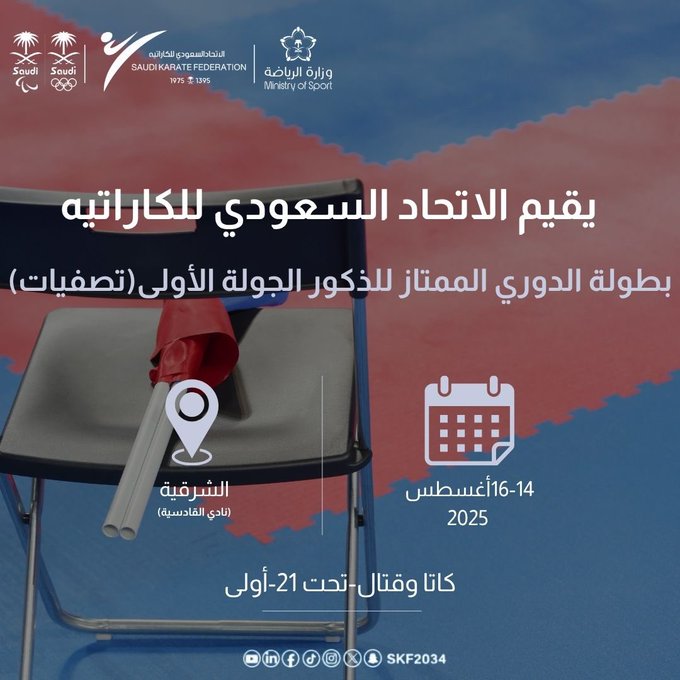 الاتحاد السعودي للكاراتيه يقيم بطولة الدوري الممتاز للذكور والباراكارتيه لعدة فئات