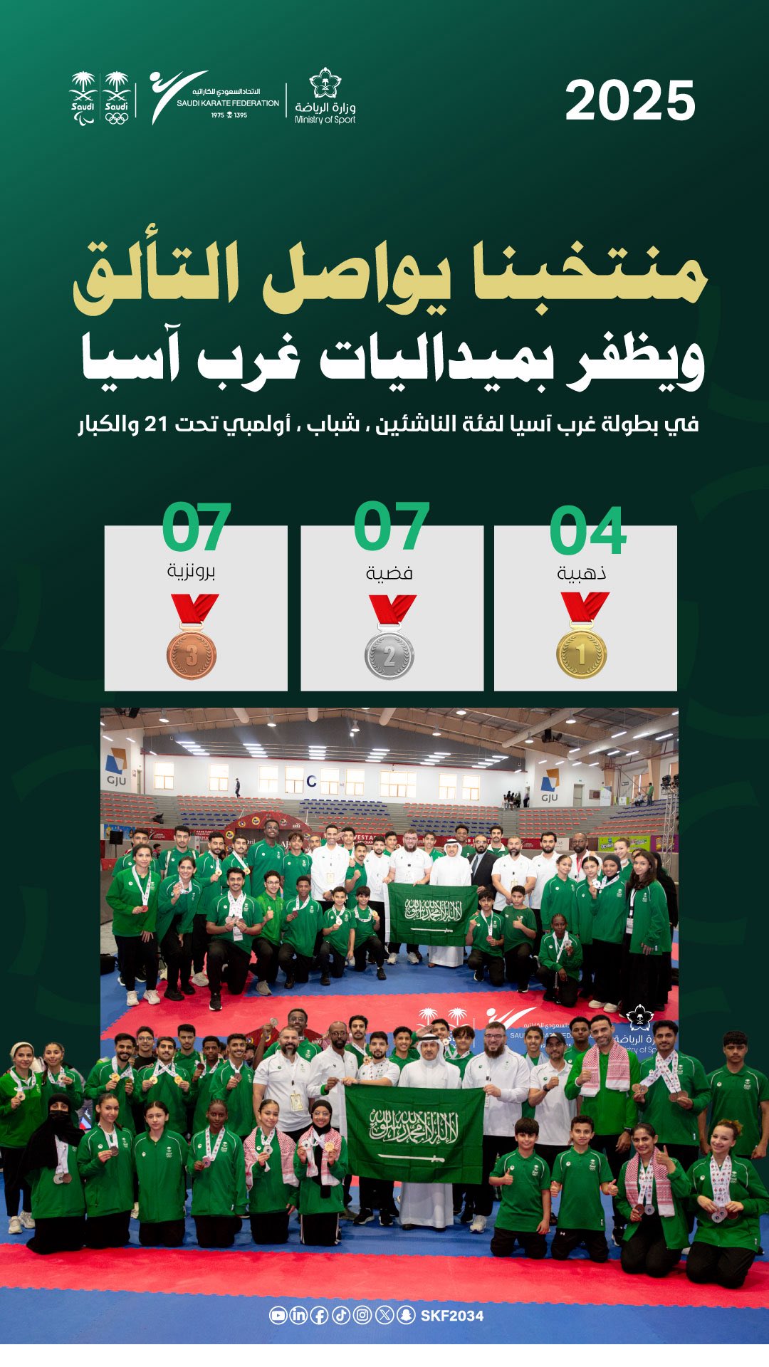 18 ميدالية حصيلة نجـوم المنتخب السعودي للكاراتيه بعد ختام بطولة غرب آسيا لفئة الناشئين ، شباب ، أولمبي